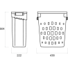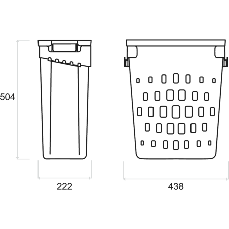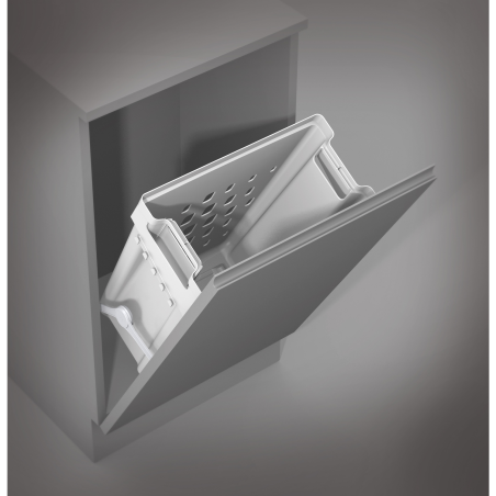 Panier à linge prévu pour les portes pourvues de charnières et équerres pour portes basculantes. Le panier est pourvu de poignées sur les côtés pour une meilleure prise et de cavités plus basses pour pouvoir enlever facilement le panier.