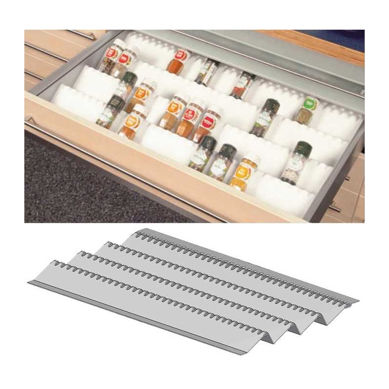 Range épices modulables et recoupables pour vous permettre d’organiser l’intérieur de vos tiroirs de cuisine.