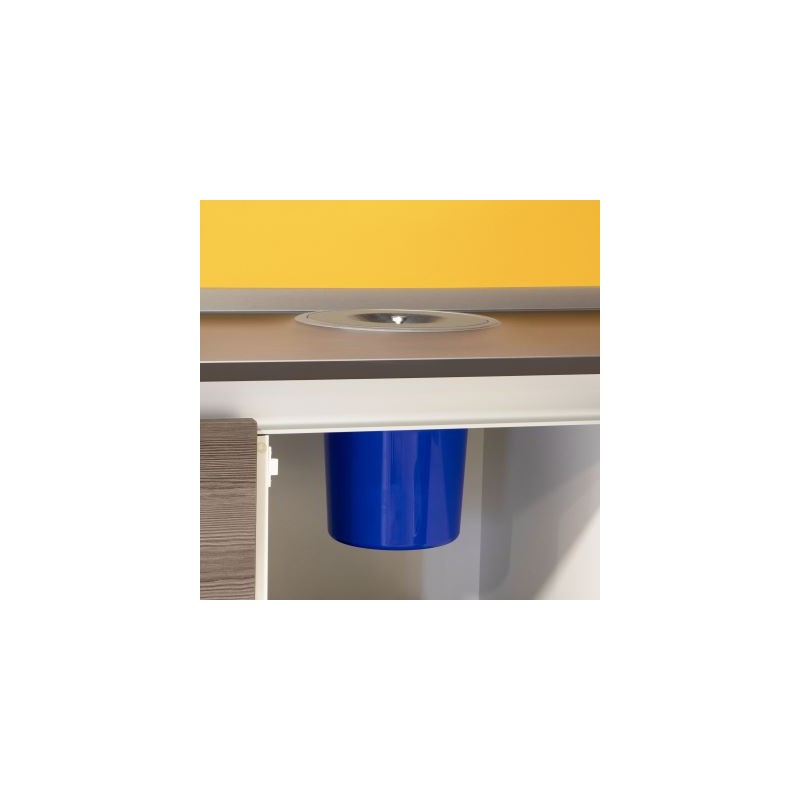 Pour son installation il est nécessaire un usinage préalable dans le plan de travail. Avec deux anneaux d'appui en acier, l'un pour assurer la stabilité de la poubelle et l'autre pour placer et maintenir les sacs à ordures.